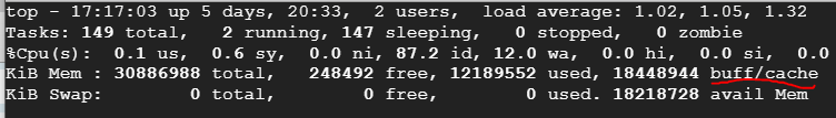 linux에서 현재 메모리 상태를 보는 top 명령을 통해 메모리 상태를 보게 되면, buff/cache라는 값이 있다는 것을 확인할 수 있다. Used도 아니고 Available도 아닌 이 메모리는 무엇일까?