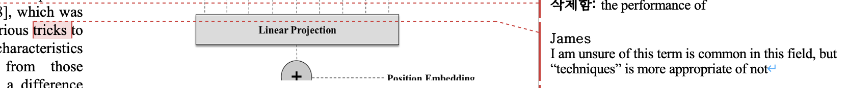 또한, 기술적인 용어의 경우에는 바로 삭제하고 고치기보다는, 위 그림과 같이 의견을 제시하며,