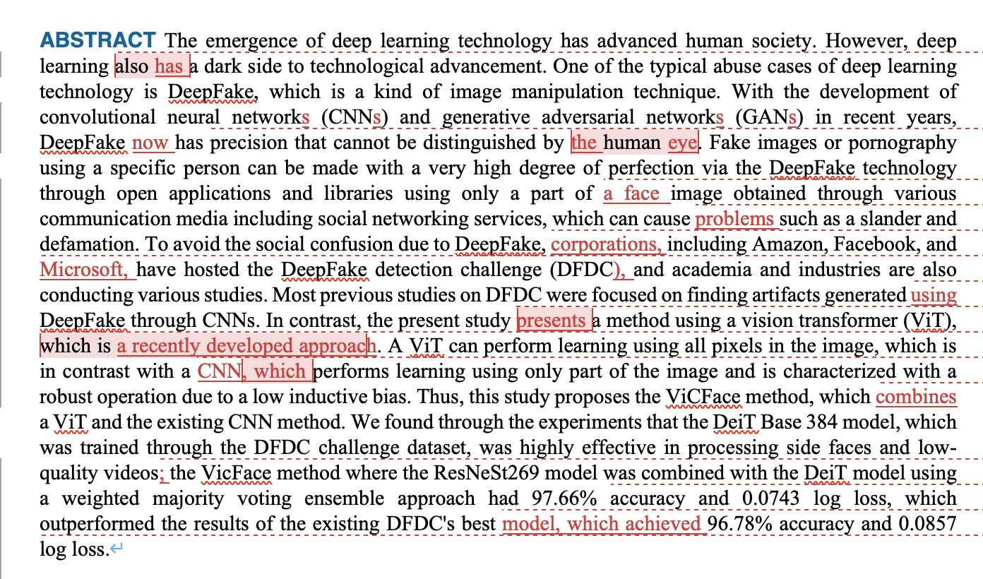 Abstract만으로도 저렇게 많은 오류(혹은 문법적으로 어색한 부분)가 있었고, 교정을 통해 수정할 수 있었다.