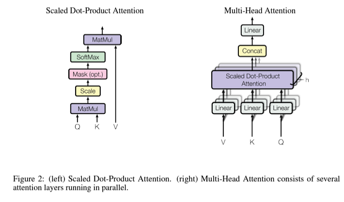 - 본 논문에서 사용하는 방식은 Query와 Key 벡터를 행렬곱해주고 Scale을 진행하여 Scaled Dot-Product Attention이라고 명명되었다.
