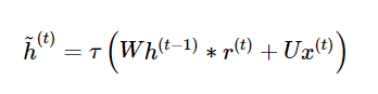 - 현재 unit의 입력값 x(t)와 h(t-1)을 바탕으로 임시 h(t)를 계산한다.