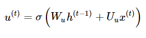- 예를 들어, u(t)가 1일 경우, forget gate가 열리고 input gate가 닫히며, 반대로 u(t)가 0일 경우, input gate가 열리고 forget gate가 닫힌다.