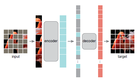 - MAE의 접근 방법은 간단하다. 입력 이미지의 Patch를 임의로 골라서 마스킹 작업하고, 손실된 픽셀을 재구축하는 방식으로 학습을 진행한다.