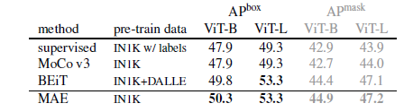 - 뿐만 아니라, Downstream Task에서도 기존 지도 학습 방식을 능가하는 정확도를 보였으며, Vision Task도 BERT와 같은 Masking 방식으로 Self Supervised Learning을 통해 이해능력을 학습시킨 후, 그를 바탕으로 Fine Tuning Approach가 가능하다는 방향성을 제시한 유망한 결과를 보인다.