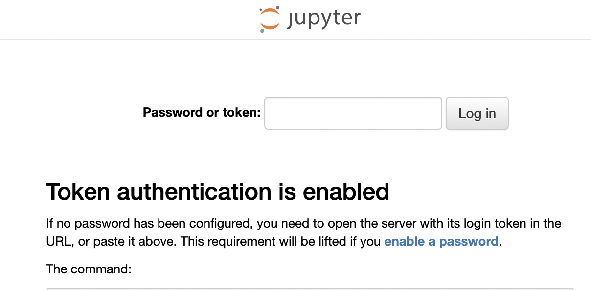 Token= 뒤에 붙어 있는 부분을 복사하여 password or token 입력 박스에 넣고 Log in 버튼을 누르면 된다!