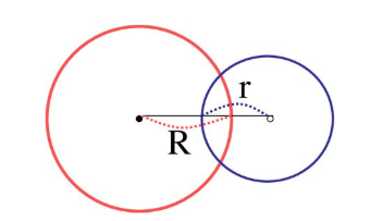 r1 - r2 < d < r1 + r2 일 경우, 두 원은 두 점에서 접하므로 가능한 C는 2개