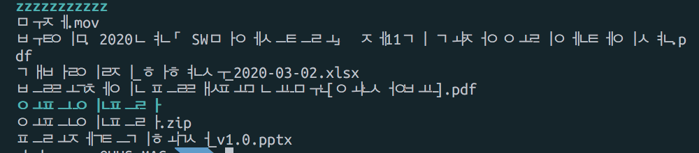 특징은 파일 자체가 깨져있는게 아니라, Finder에서는 정상적으로 보이는 파일인데 iTerm2에서만 이렇게 자소분리가 일어난다는 것이죠.