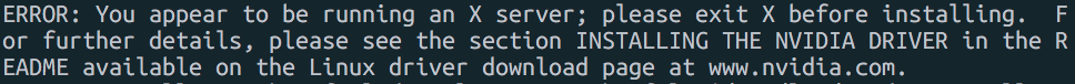 ERROR : You appear to be running an X server; please exit X before installing.