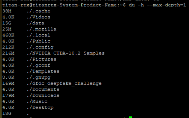du -h --max-depth=1 // 현재 위치의 하위디렉토리들의 용량 표시