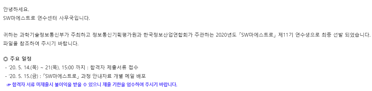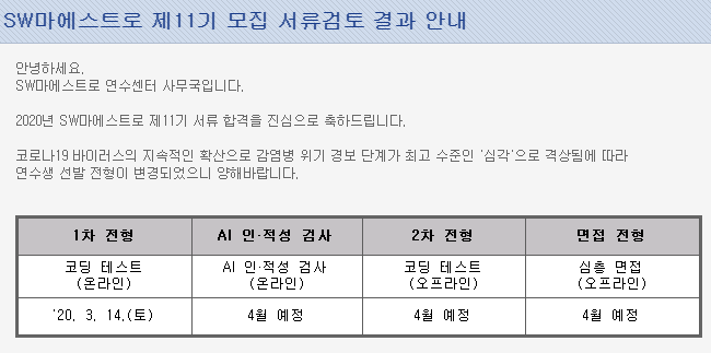 2020/12/16 - [IT 외부활동/SW마에스트로] - [SW마에스트로] 소프트웨어 마에스트로 11기 합격 후기 - 서류 대비