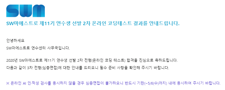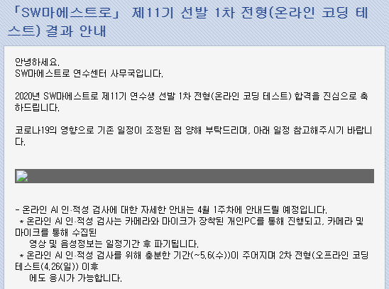 2020/12/16 - [IT 외부활동/SW마에스트로] - [SW마에스트로] 소프트웨어 마에스트로 11기 합격 후기 - AI인적성